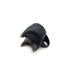 Standing on three feet, this quirky mug is not afraid to make a statement. Glazed in stark black, the minimal decor allows the unique form to truly shine on its own. Suitable for both cold and hot beverages.